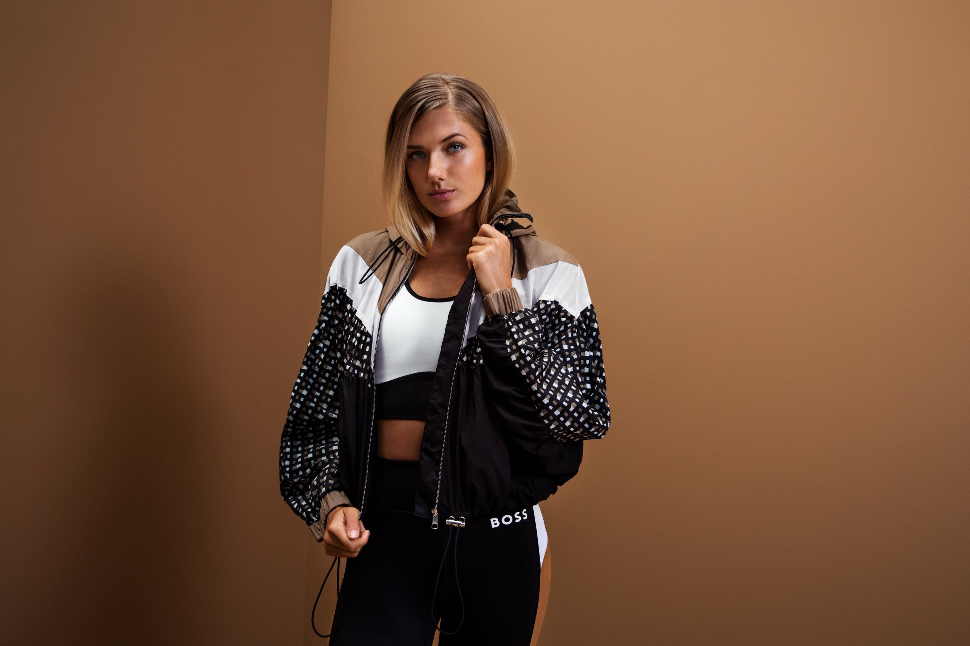 BOSSと陸上選手のAlica Schmidt(アリカ・シュミット)との継続的なコラボレーションによる最新作は、トレーニングウェア、テーラードアイテム、そしてBOSSのモノグラムを取り入れたアイコニックなスタイルがシックに混ざり合っています。