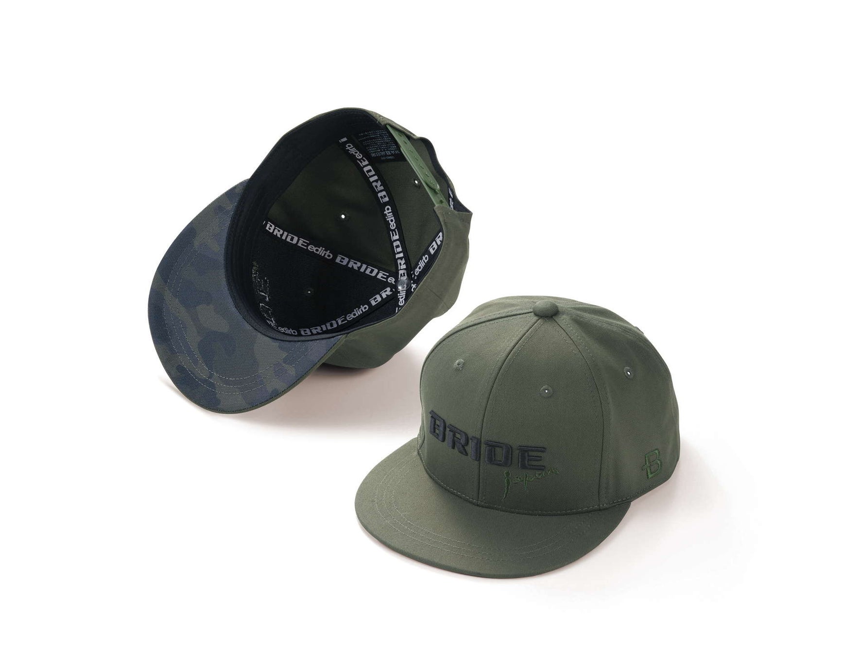 本製品は、季節を問わず被れる、フラットバイザー型のキャップです。前面には立体刺繍で【BRIDE】のロゴを大きく配置し、バイザー裏面には、さりげなくカモフラージュ柄がプリントされています。日常使いしやすく、オシャレなデザインのキャップです。