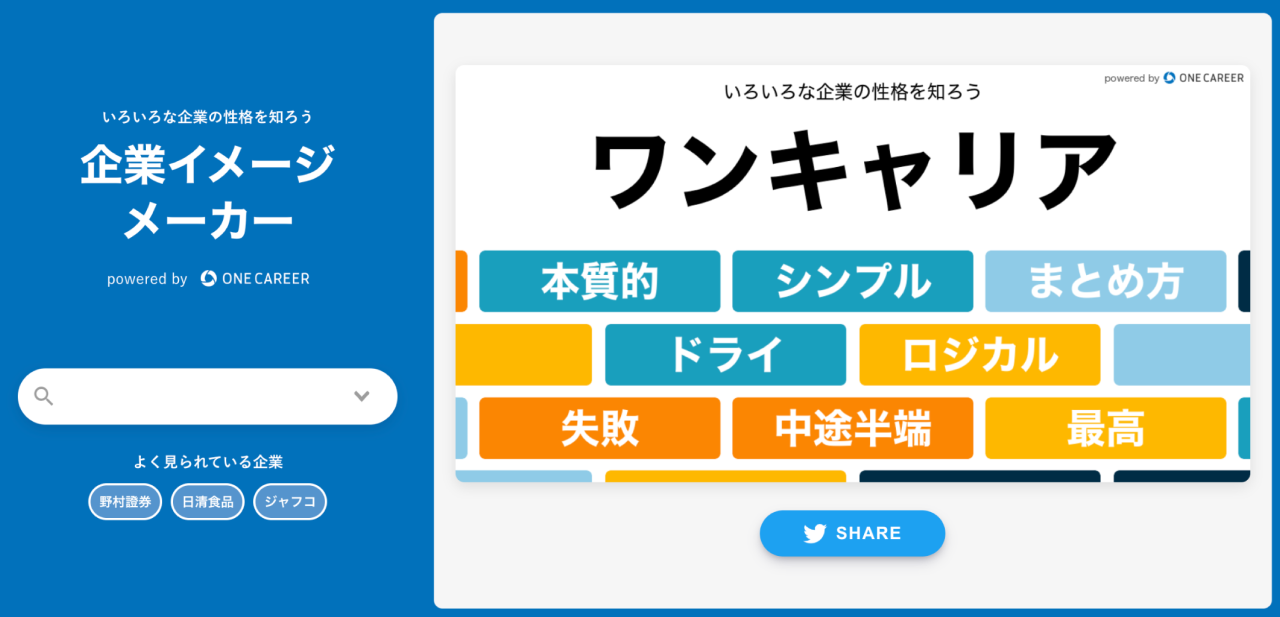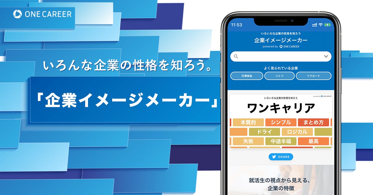 はじめてのキャリアを選ぶ、就活サイト「ONE CAREER」を運営する株式会社ワンキャリア(本社:東京都渋谷区、代表取締役社長 宮下尚之、以下ワンキャリア)は、「企業イメージメーカー」を開発し、11月29日より提供開始したことをお知らせいたします。