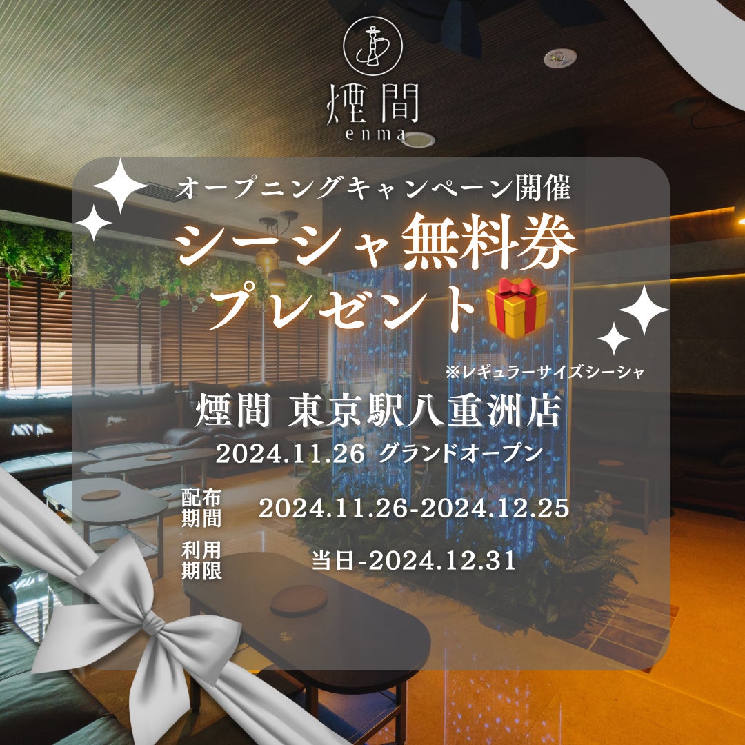 【東京駅八重洲口徒歩2分】「煙間 -エンマ- 東京駅八重洲店」11月26日オープン!ダーツ個室完備&シーシャ無料券プレゼントキャンペーン実施中!