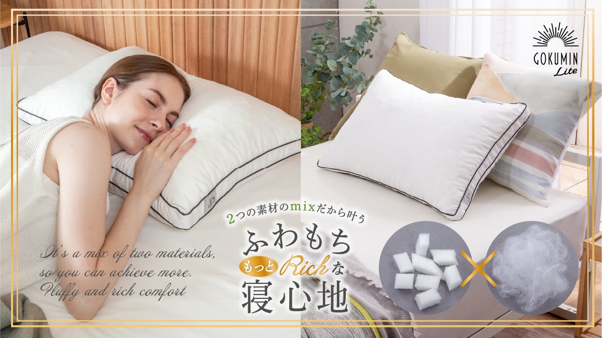 【GOKUMIN】mix綿でふわもちリッチな寝心地「エアリータッチピロー低反発タイプ」が新登場