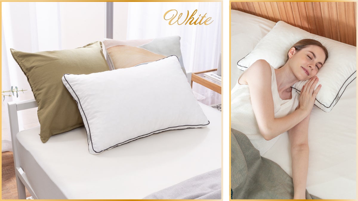 空気をたくさん含んだ羽毛タッチの「極細マイクロファイバー綿」と高品質の低反発ウレタンを粉砕した「低反発チップウレタン」を独自配合した中綿を贅沢に使用。優しく頭部の形にフィットする、極上の“ふわもち”な寝心地を実現しました。羽毛のニオイが苦手な方でも気にせずお使いいただけます。
