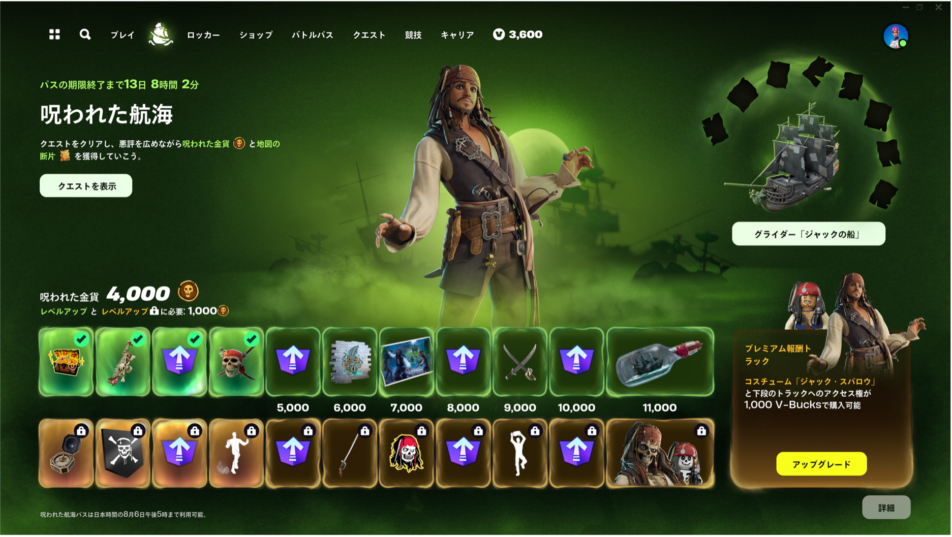 呪われた航海クエストをクリアすると、「呪われた金貨」を入手できます。呪われた金貨を獲得するほど、多くの呪われた航海パスのアイテムをアンロックできます。