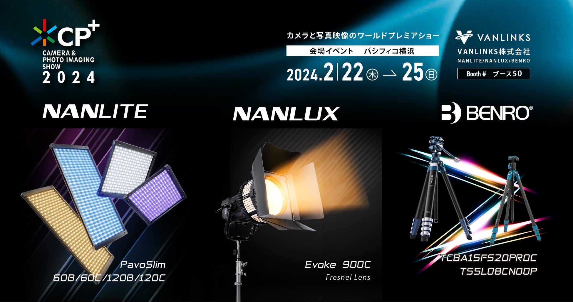 LED照明「NANLITE/NANLUX」や三脚ブランド「BENRO」を展開するVANLINKS株式会社(本社:新宿区)は、2024年2月22日(木)から2月25日(日)にパシフィコ横浜で開催される、「CP+2024」に出展いたします。