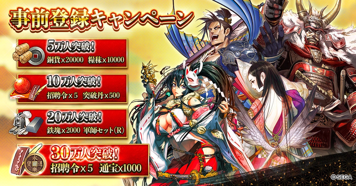 事前登録者数30万人突破 - 招聘令×5、通宝×1000
