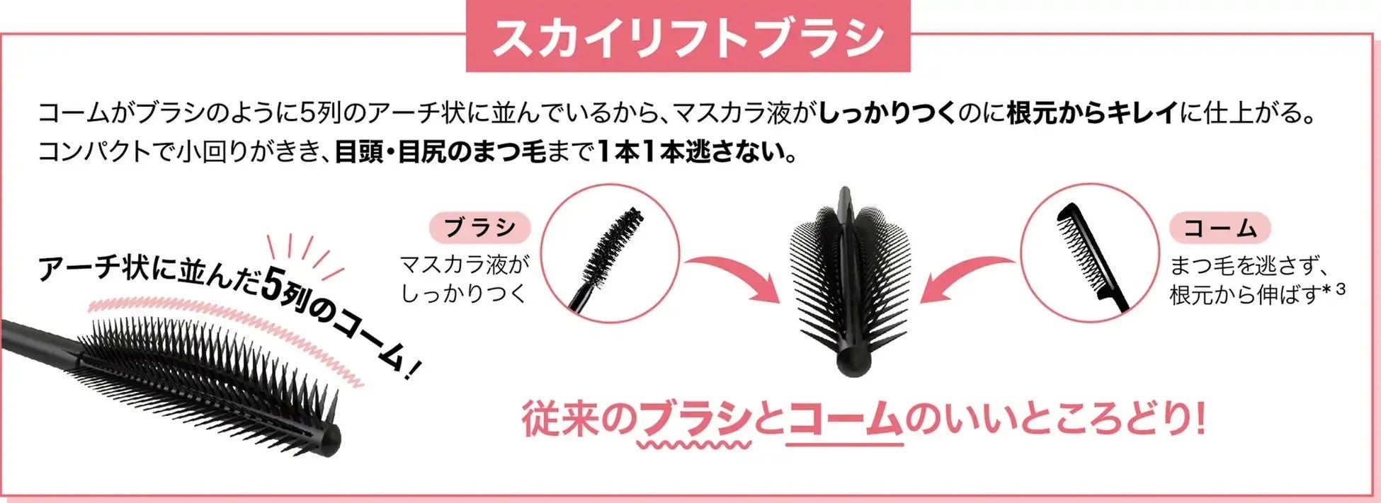 ロングウェア成分*³がまつ毛に密着し、1日中*²自然なリフトをキープ。
