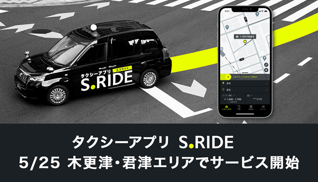 S.RIDE株式会社(本社:東京都台東区、代表取締役:西浦賢治、以下、S.RIDE)は、2022 年5月25日から、木更津合同タクシー株式会社(本社:千葉県木更津市、代表取締役:山田幸生)のタクシー車両で、タクシーアプリ“S.RIDE®”のサービス※を木更津・君津エリア※で開始します。