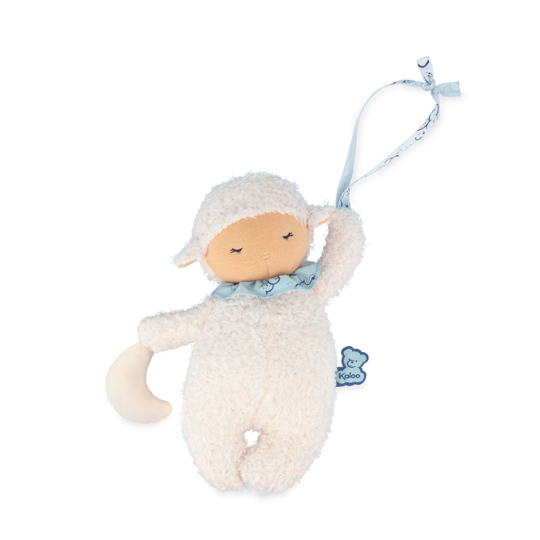 おやすみタイムにぴったりなやさしい音色のオルゴール。ひつじのしっぽを引くと「Hush, Little Baby/おやすみ、赤ちゃん」が流れます。リボンのループ付きなので、どこでも持ち運び可能。いつもの音色にほっとします。