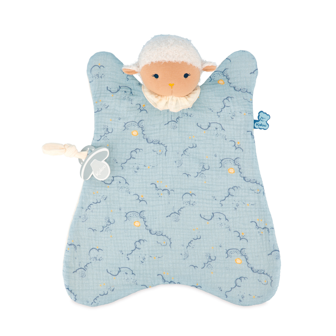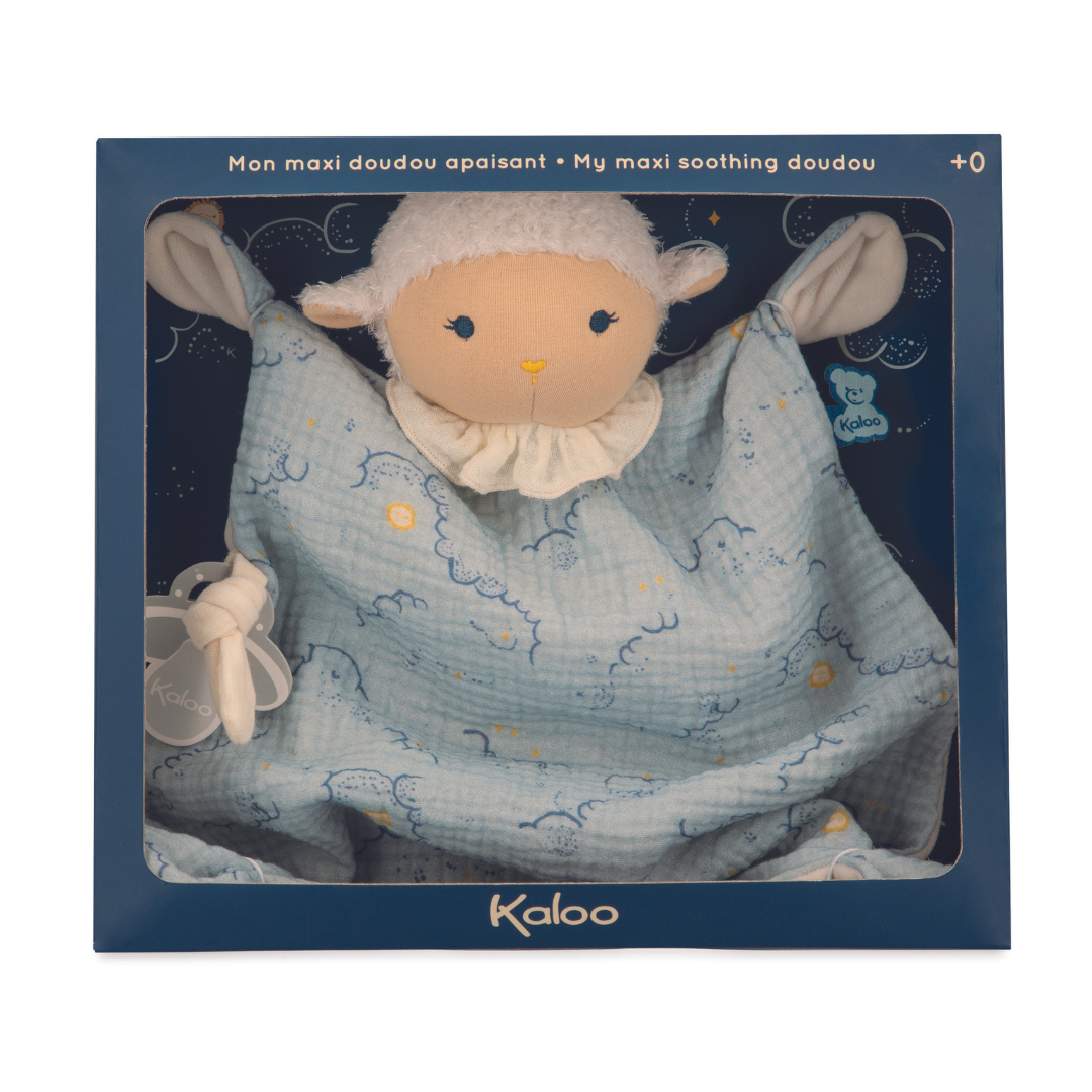 Kaloo初のビッグサイズ(約40cm)のドゥードゥー。ブランケットのようにベビーに掛けてお使いいただくことも可能です。表には繊細なプリントのコットン生地、裏にはやわらかなマイクロベロアを使用し、ずっと触れていたくなる肌ざわり。側面の結び目にはお気に入りのおしゃぶりやおもちゃを付けて。いつでも一緒のお友だちです。
