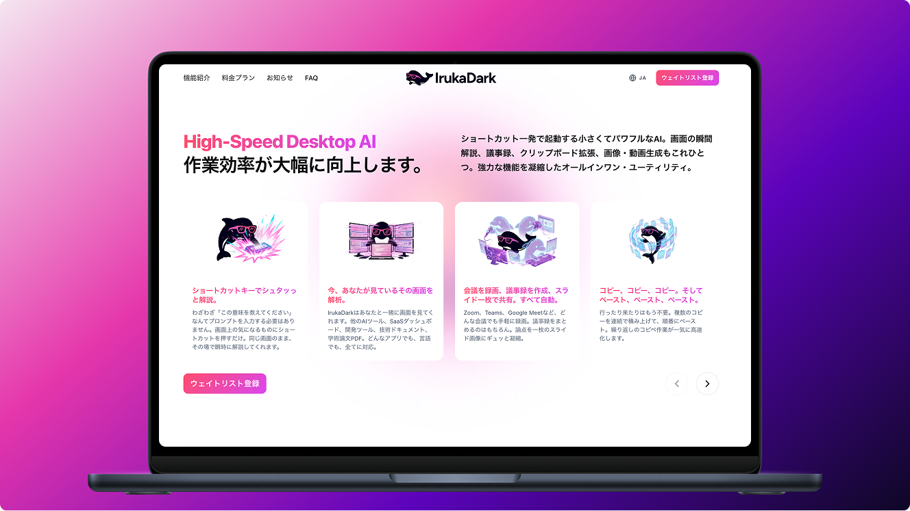 PC画面のすべてをAIが瞬間解説。デスクトップ常駐型の高速AI「IrukaDark」正式版に向けウェイトリスト登録を本日開始