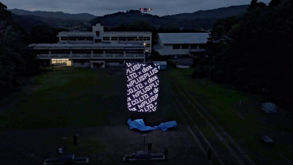 LEDを駆使した革新的なテクノロジー演出と独自のダンスパフォーマンスで知られるMPLUSPLUSが、防水性と耐風性を兼ね備えた、屋外対応の軽量・フレキシブル・ワイヤレスLEDディスプレイを開発して展示します。これまで開発してきた壊れにくいLEDや小型LED制御デバイスの開発技術を応用した軽量のメッシュ型ディスプレイは、防水性能や風の影響を受けないため、スポーツシーンや屋外イベントで活用でき、ドローンから吊り下げた飛行も可能。数人で持ち運び可能なため養生されている芝生や、重量物の設置が困難な歴史的建造物などでの使用が見込まれます。形状のカスタマイズも可能で、人型や商品シルエットなど、用途に応じた“空飛ぶディスプレイ”の制作が可能。この軽量LEDディスプレイは、ドローンによる吊り下げだけでなく、巨大なフラッグのように人が持って運ぶ演出や、施設への常設設置など、さまざまな用途に対応可能。会場では6m×9mの巨大スクリーンを展示します。