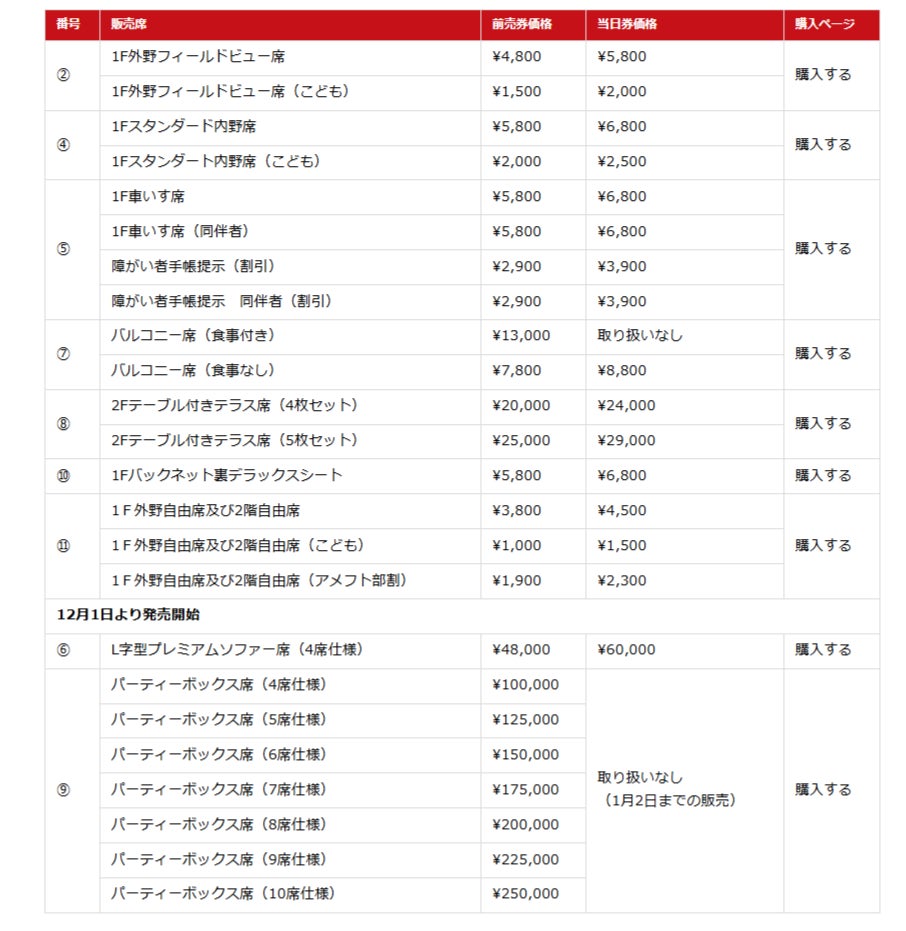 ※パーティーボックス席は12月1日(月)発売