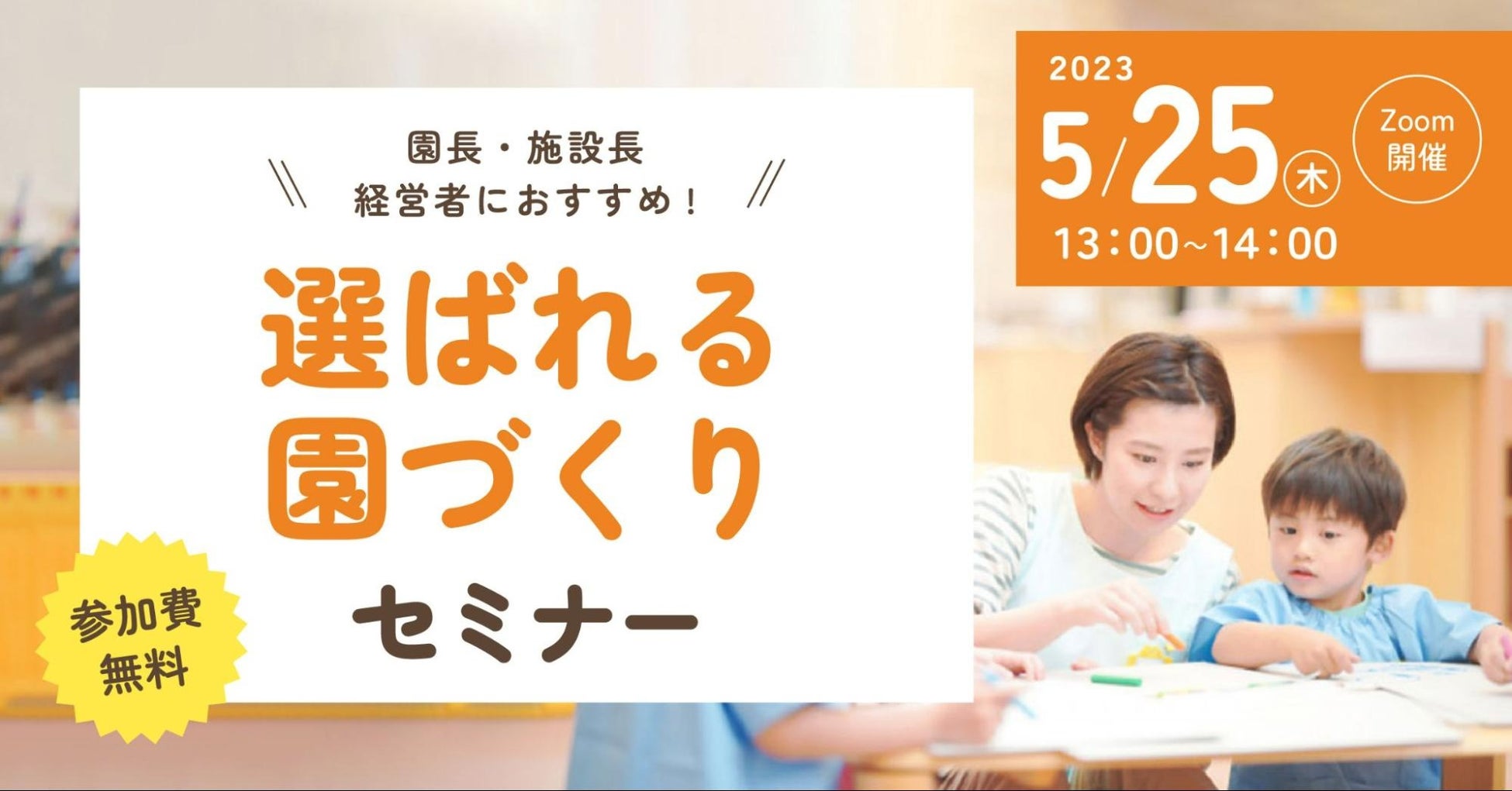 【5/25(木)13:00~14:00】保育関係者向け「選ばれる園づくりセミナー」無料オンライン開催