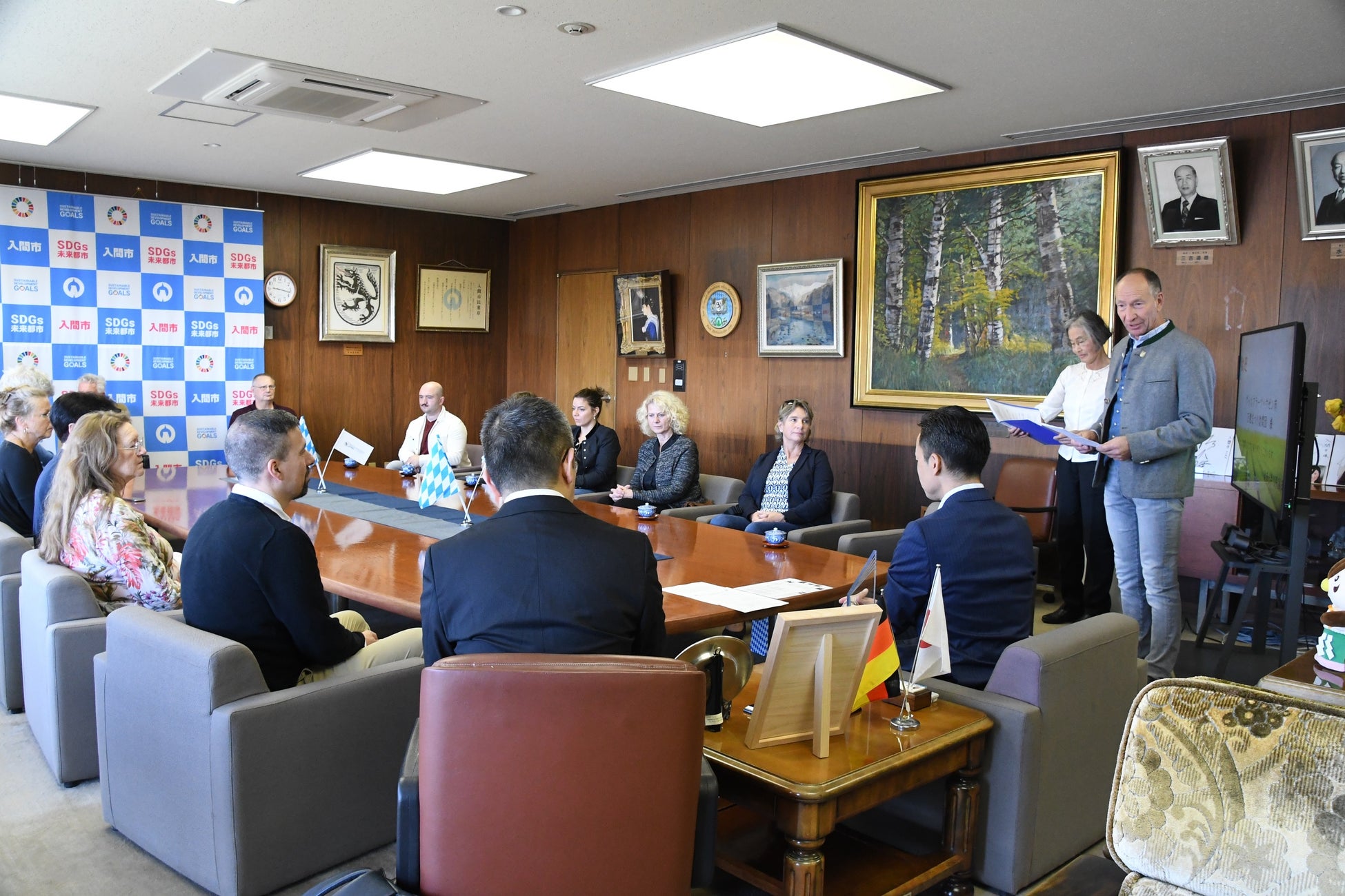 ギュンター・アイブル第二市長はじめ15名の皆さま方に心から歓迎を申し上げます。10月26日〜27日の入間万燈まつりは、入間市とヴォルフラーツハウゼン市との思い出深いまつりでもあるので、ぜひ楽しんでいただきたいと思います。