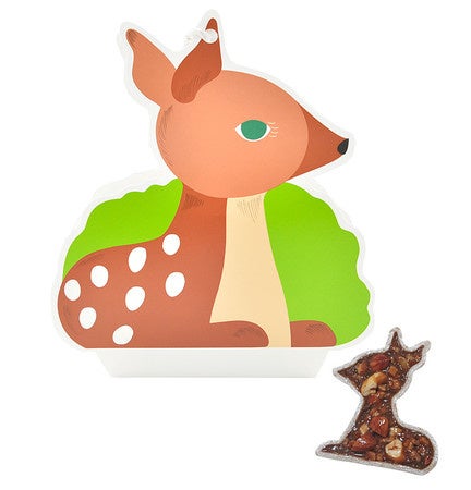 サクサクのもなかにアーモンド、カシューナッツ、クルミのフロランタンを詰めて香ばしく焼き上げた子鹿を模ったお菓子。