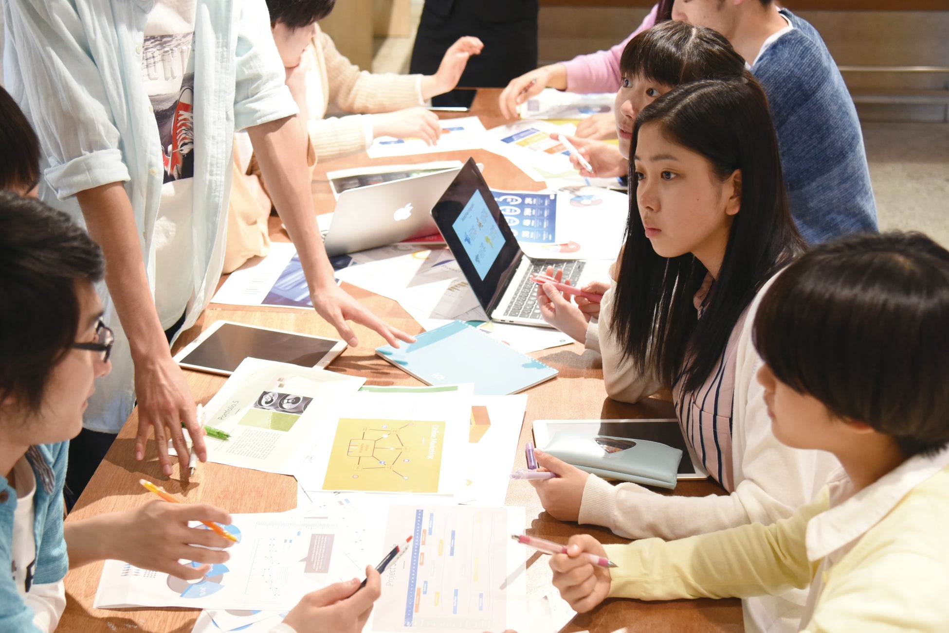 スマートスタディコースの理念である「自ら学ぶ力」の育成。新しい価値の創造をテーマに企画力を養い、受講者へ「能動的に解決する力」、「自ら未来を切り拓く力」を身につけます。