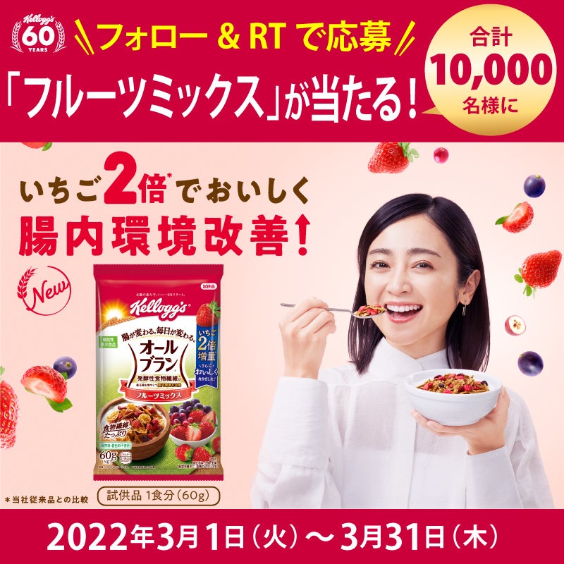・キャンペーン名:「新しくなった!オールブラン フルーツミックスが10,000名に当たる!」Twitterキャンペーン