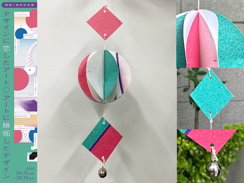 に嫉妬したデザイン」の垂れ幕を、風に揺れる姿が涼しげな「ハニカムボール風鈴」にアップサイク