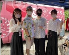 ブランドロゴやバラモチーフなどをちりばめたかわいらしいデザインの移動販売車に、モビリティ限定商品やガチャガチャ、店舗での人気商品を積み込み、お盆期間の8/11にイオンモール太田、8/13に新宿ミロード(モザイク通り)、8/14にイオンモール浜松市野を巡回しました。