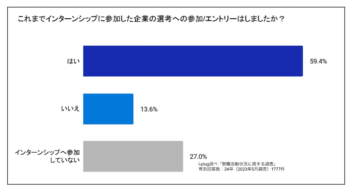 59.4%の学生がインターンシップに参加した企業の選考へ参加/エントリーしていることがわかりました。インターンシップへの参加と志望度の関係性が大きいことが推察できます。