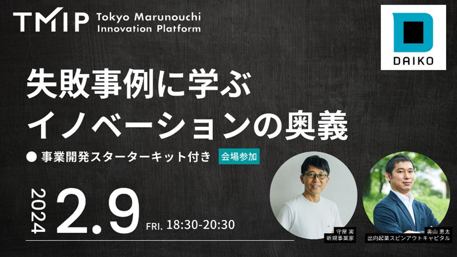 【TMIP✕大広 共催セミナー】<奥山恵太氏・守屋実氏 登壇>「失敗事例に学ぶ イノベーションの奥義」●事業開発スターターキット付き~2024年2月9日(金)18:30‐20:30開催~