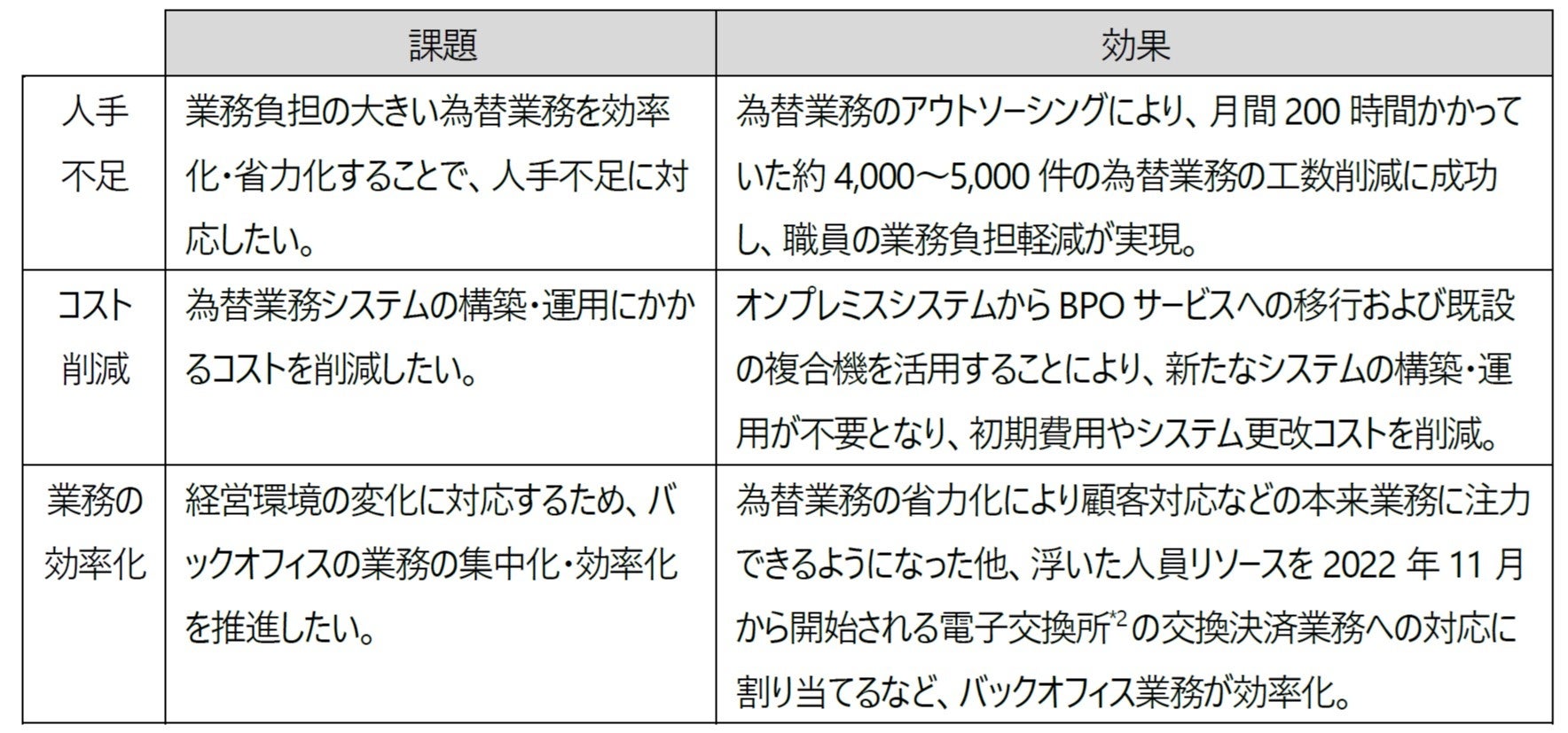 年間5万件を越える為替業務負荷削減と、システム更改コスト低減を実現