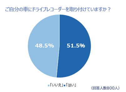 ドライブレコーダーの利用について聞いたところ、約半数(51.5%)がドライブレコーダーを利用しているという結果となりました。