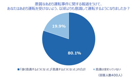 あおり運転をされた経験のあるドライバーは2018年の調査開始時(70.4%)よりは減少しているものの依然として約半数(53.5%)を占める結果となりました。また、悪質なあおり運転事件に関する報道をうけて、80.1%のドライバーが、あおり運転を受けないよう以前より意識して運転をしています。