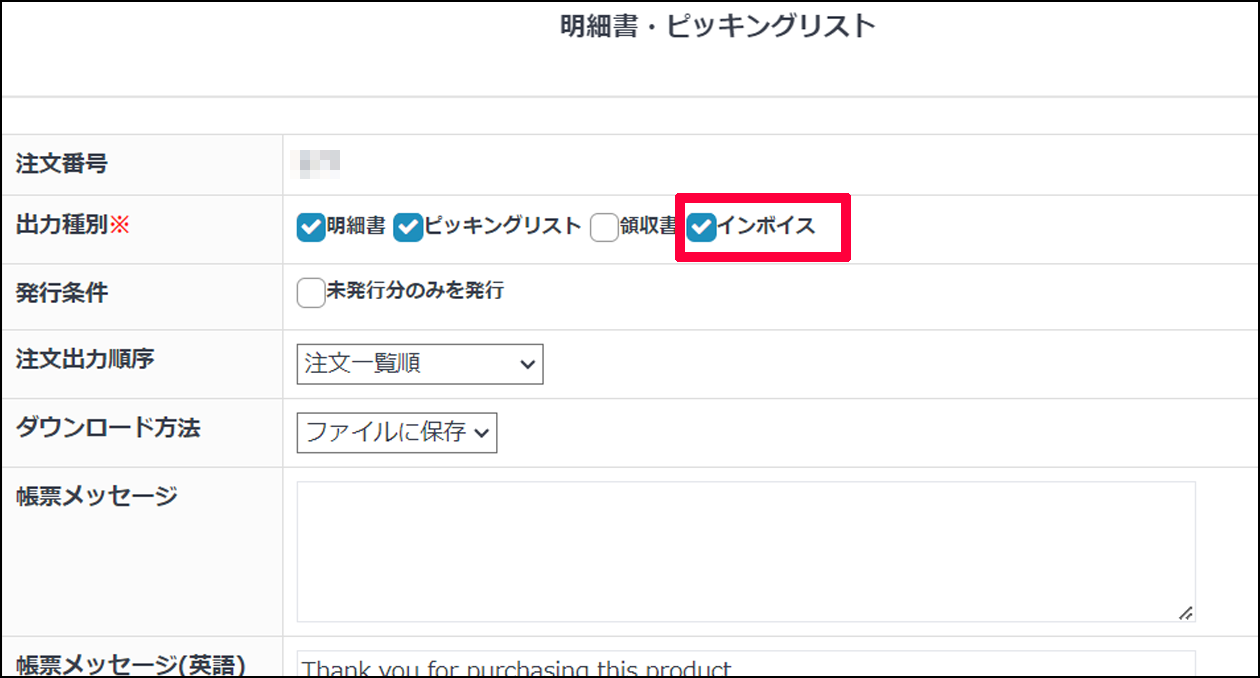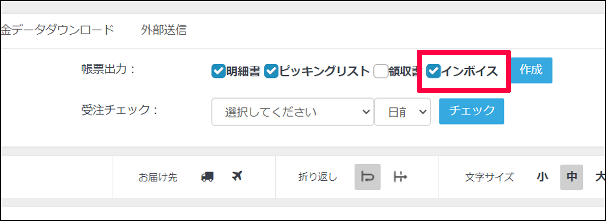 注文一覧の手続きパネルに「インボイス」チェックボックスを追加しました。