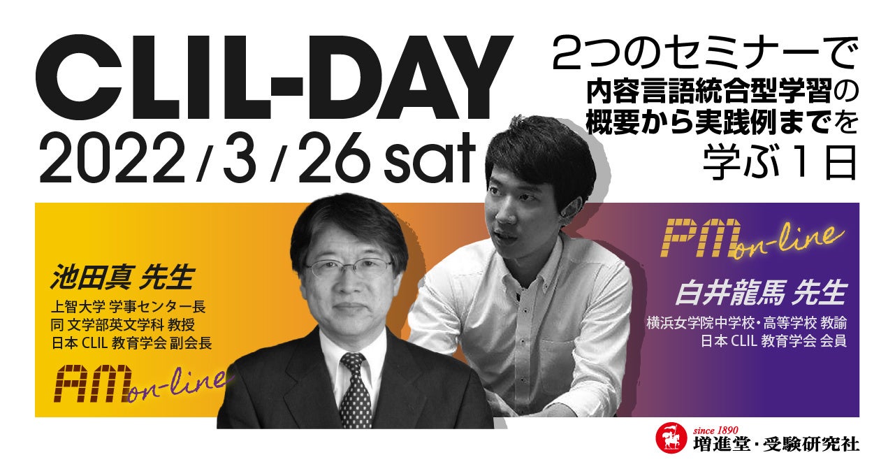 【増進堂・受験研究社】英語教員向けCLILセミナー開催!『CLIL-DAY』【2部制】〜2つのセミナーで内容言語統合型学習の概要から実践例までを学ぶ1日〜(3月26日)