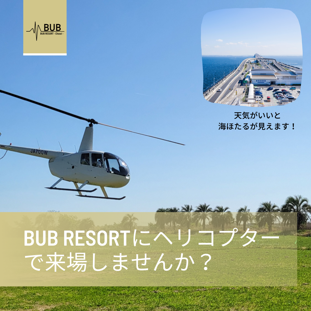 株式会社BUB(東京都品川区、代表取締役 一戸 悠人)が運営するBUB RESORT chosei Village(千葉県長生郡)では、送迎オプションでヘリコプターが登場。