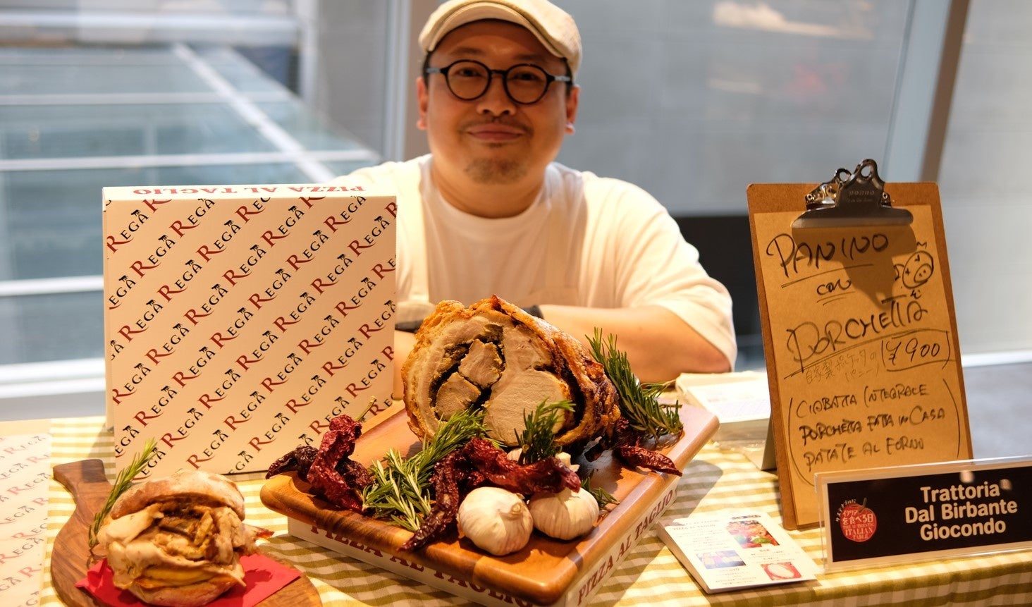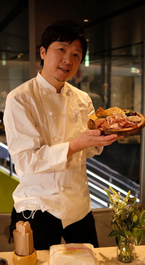 エミリアロマーニャ州の前菜盛り合わせ ・アッフェッタートミスト(生ハムやサラミ数種) ・全粒粉のティジェッラ ・エルバッツォーネを提供しました。エルバッツォーネは、旬の青菜を炒めてパルミジャーノで調味し、タルトの具にしたこの料理は、パルマとモデナの中間にある街、レッジョ・エミリアの農民料理がルーツで、この地方のソウルフードのようなもので最も愛されている郷土料理のひとつです。フードロスをなくすために野菜の食材を全て利用するために今回は株の葉なども利用して作りました。イタリアサウンディングの商品については、日本の市場にもかなり多くみられて一般的な消費者の心を惑わせていることに少し憤りを感じるが、レストランで日々正真正銘の眞のイタリア料理をお客様に提供することでその問題を回避できれば良いと思います。在日イタリア商工会議所主催のThe Authentic Italian Tableのようなイベントは、イタリアンサウンディングと戦う正真正銘の本格的なイタリア料理を体感できるとても貴重な素晴らしい機会だと思います。今回も参加できることをとても嬉しく思います。