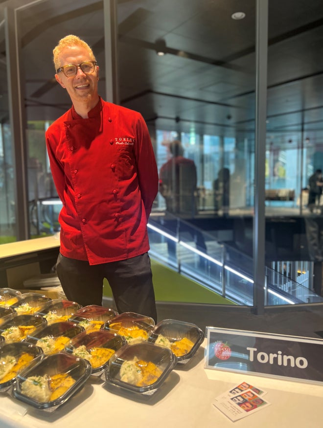 今回は、「サステナブルにイタリアを食べる」がテーマということで、食品ロスの削減につながるサステナブルなメニューを考案しました。最も残りやすい食材のひとつであるパンを活用したメニューやパンを酵母として利用したパンビールなどを提供しました。残ったパンを練ってさらに再利用させてパスタを作り、スープ仕立てで美味しく召し上がっていただけるPassatelli in brodoを考案しました。Passatelliパッサテッリは、パン粉、卵、おろしたパルミジャーノ・レッジャーノから作られるパスタ素朴な見た目と味わいはまさに郷土料理でイタリア・エミリア・ロマーニャの北部などで親しまれる味だ。Pepe Rosso はイタリアの食文化や郷土料理の継承していくことをミッションとしているので、正真正銘のイタリアの食文化やイタリアの食在の真のブランド毎年在日イタリア商工会議所主催のThe Authentic Italian Tableに参加できることを誇りの思います。