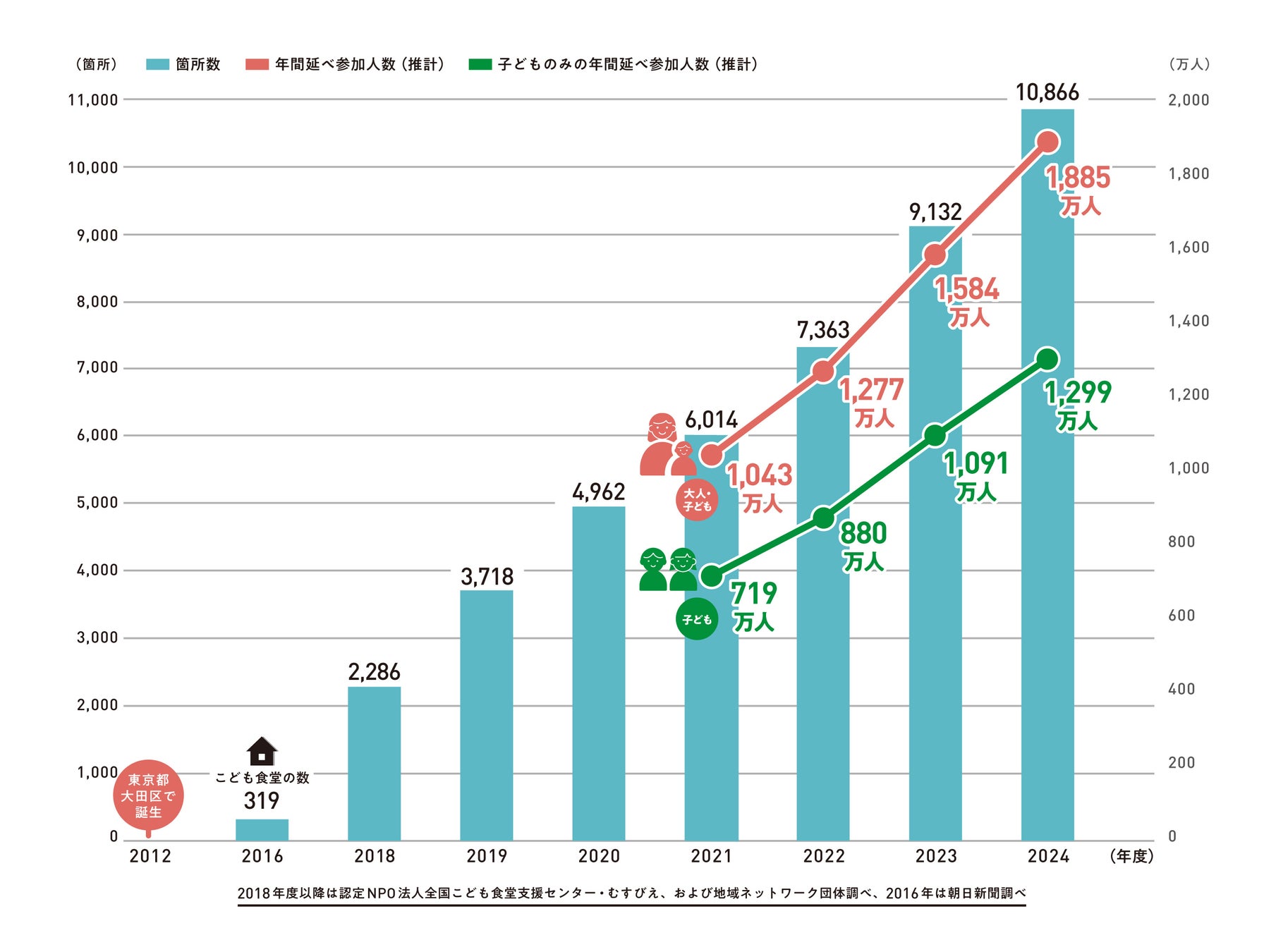 こども食堂数が日本で初めて10,000箇所を超え、公立中学校数を上回る「10,866箇所」に ~子どもをまんなかに「こども食堂」がもっと身近な「みんなの居場所」に~