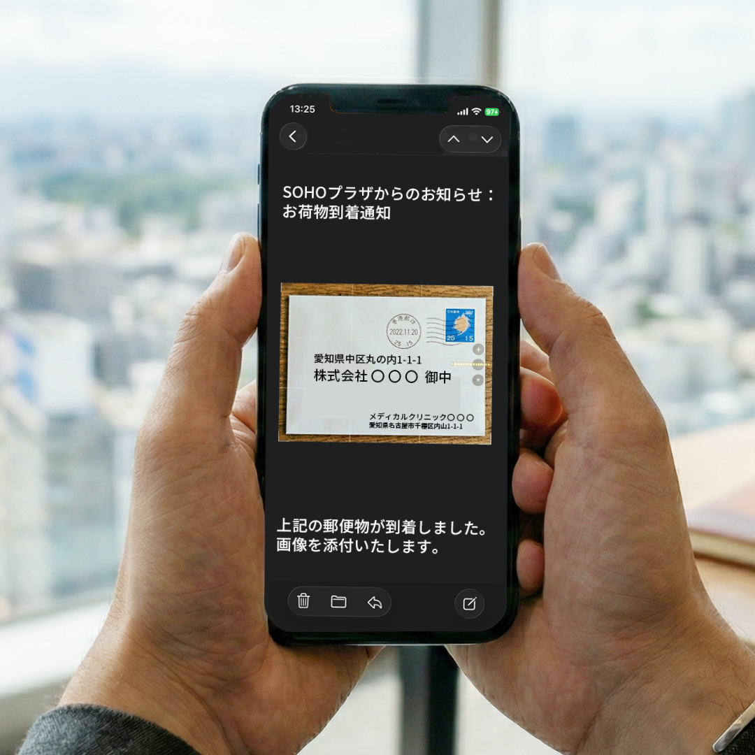 写真で即時確認: 届いた郵便物・配達物の宛名面・外観をメールで受け取れるため、差出人や重要度をオフィス不在時でも即座に判断できます。