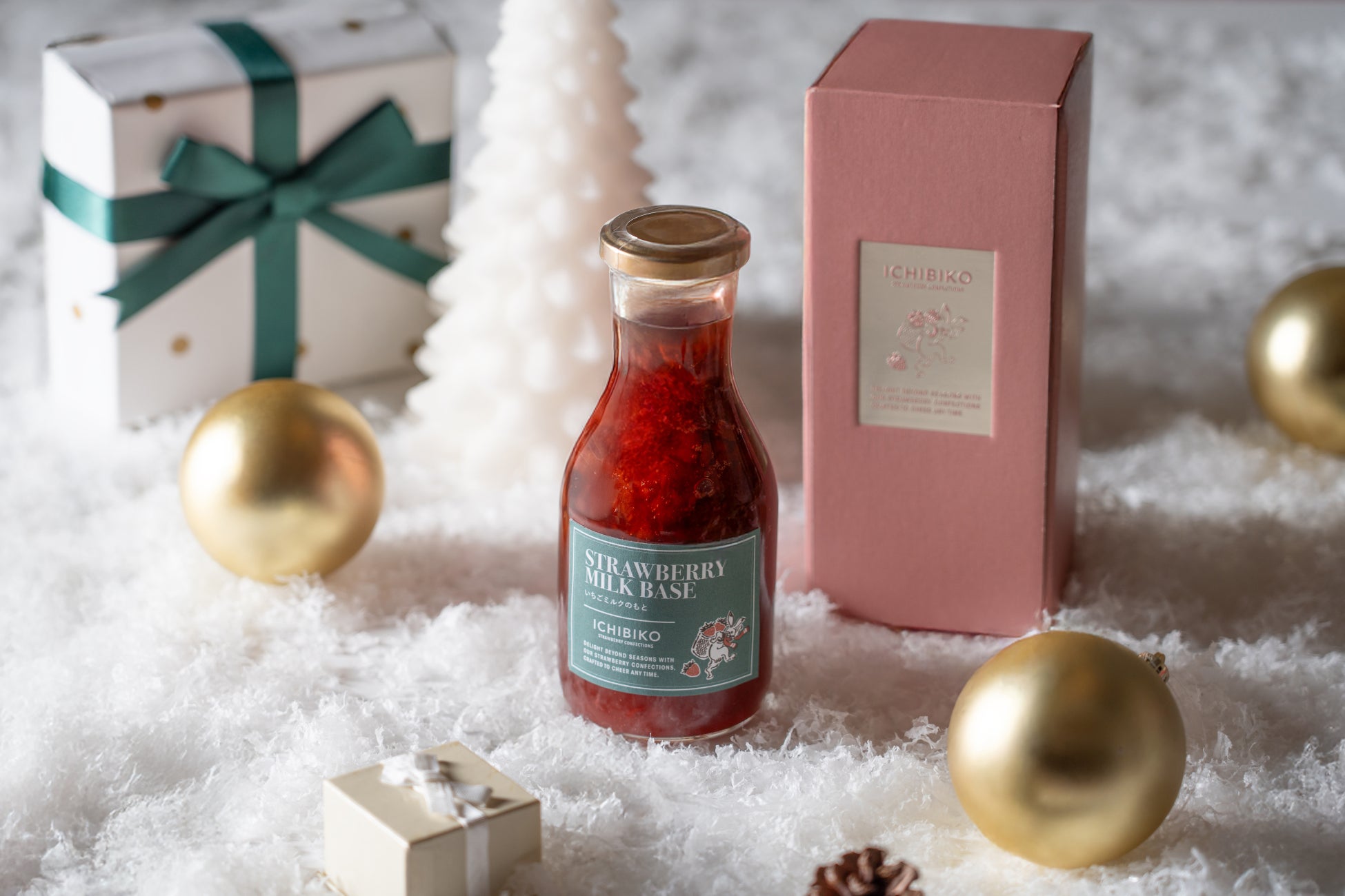 ICHIBIKOの人気商品「いちごミルクのもと」が、冬季限定ラベルで登場。たっぷり果肉の贅沢なおいしさはそのままに、ギフトにも映える季節限定デザインです。ミルクで割るだけで、ICHIBIKOカフェの味をご自宅でお楽しみください。