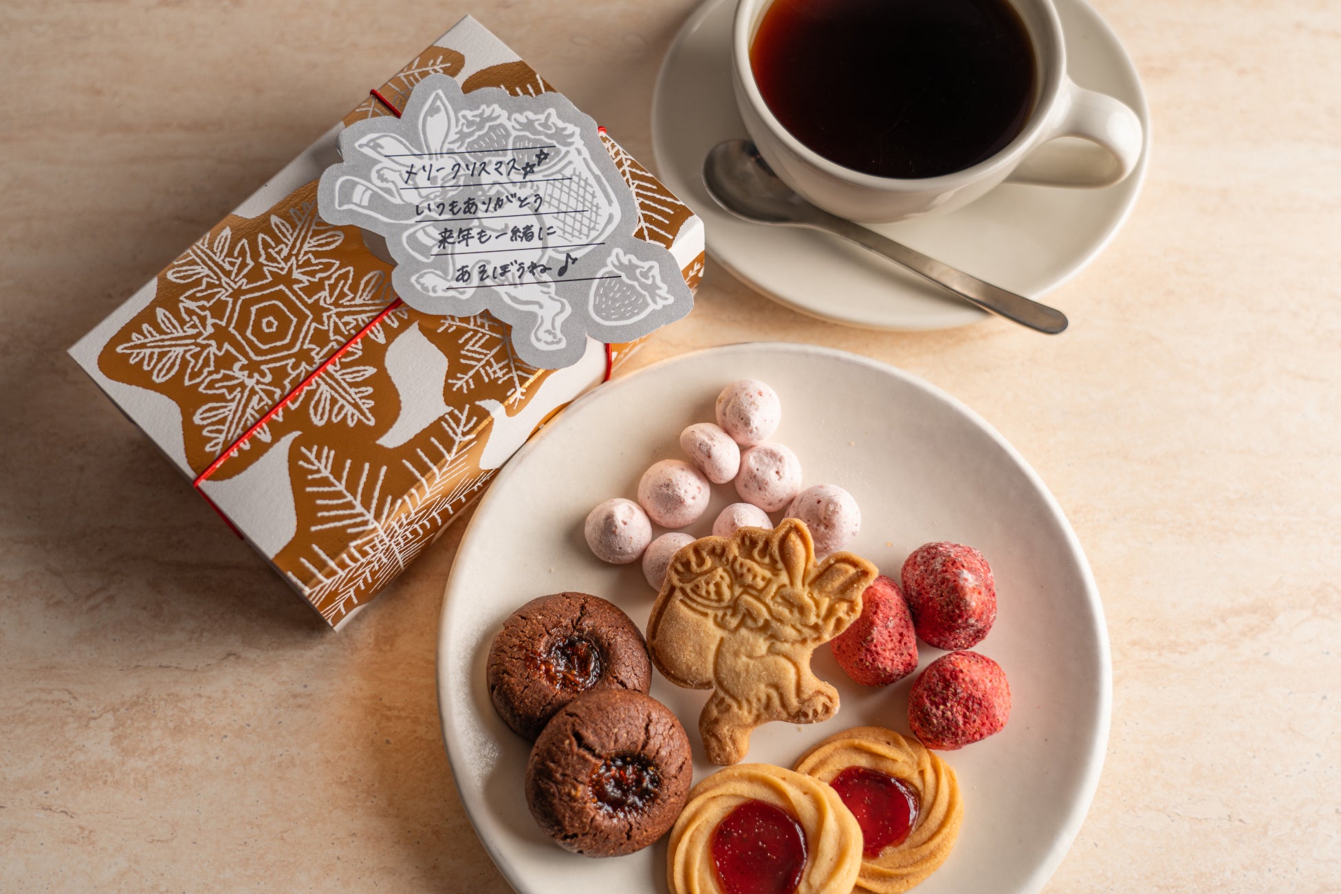 苺の自然な味わいを楽しめる自家製の「いちごのジャムクッキー」をはじめ、フリーズドライ苺にチョコレートを染み込ませた「いちごのしみチョコ」、優しい味わいとほろほろした口どけの「いちごのメレンゲ」など豊富なラインナップに。センターには、ICHIBIKOのアイコンであるうさぎの「ICHIBIKOロゴクッキー」も詰め合わせました。