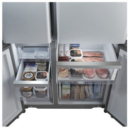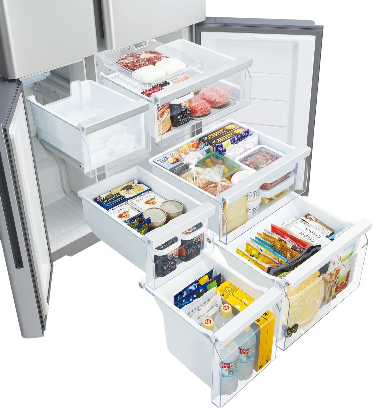 約‐30℃(※4)の冷気ですばやく冷凍する「クイック冷凍(※5)」機能が付いた上段は、炊きたてご飯の冷凍やホームフリージングに。中段には食パンや冷凍食品、深さ約28cmの下段には500mlのペットボトルや冷凍ピザのような大きい食品も入れられます。