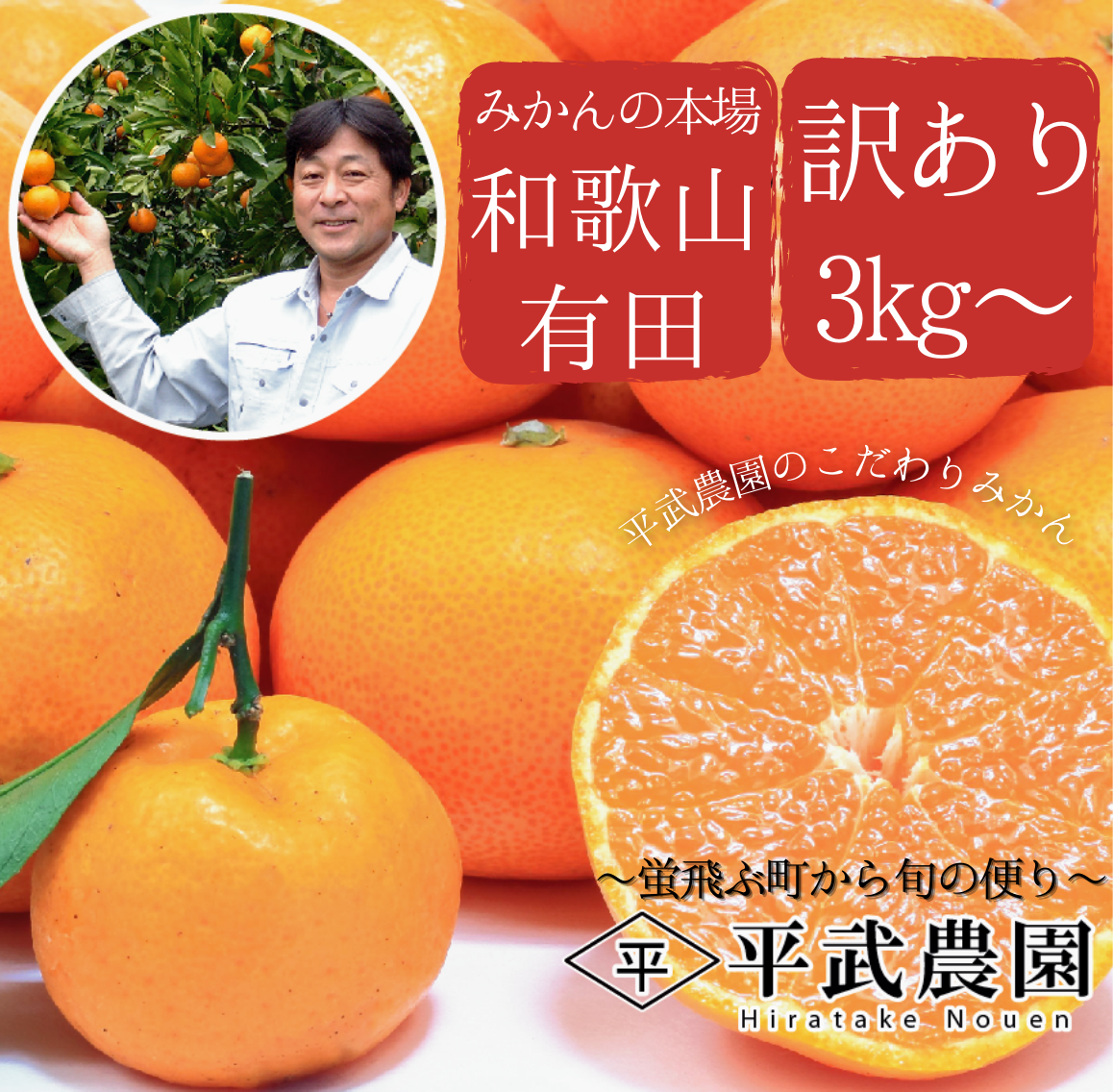 有田みかんのトップブランド産地の田口地区でこだわって栽培しています。ただ甘いだけのみかんではなく、うまみとコクがあり、”いつまでも甘みが舌に残る”平武農園のこだわりのみかんです。サイズはおまかせ、黒い斑点がある、模様があるなどの理由で訳あり商品としていますが、味には影響がないため、美味しく召し上がっていただけます。自宅用として人気の商品です。