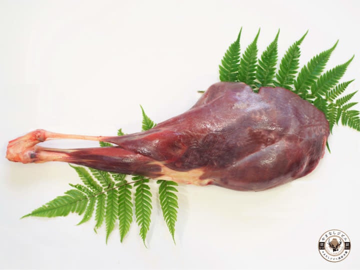山梨県丹波山村産の鹿の「小鹿後ろ足」です。捕獲したシカを、村内の加工場で2時間以内に解体し、その後4日間じっくりと熟成させました。小鹿の肉は非常に柔らかく、そして臭みが少ないのが特徴です。また、熟成することで、しっかりと旨味を閉じ込めています。BBQ等で一本まるごと網の上に置き、焼けた表面をナイフそぎ落としながらワイルドに調理するなど様々な楽しみ方ができます。