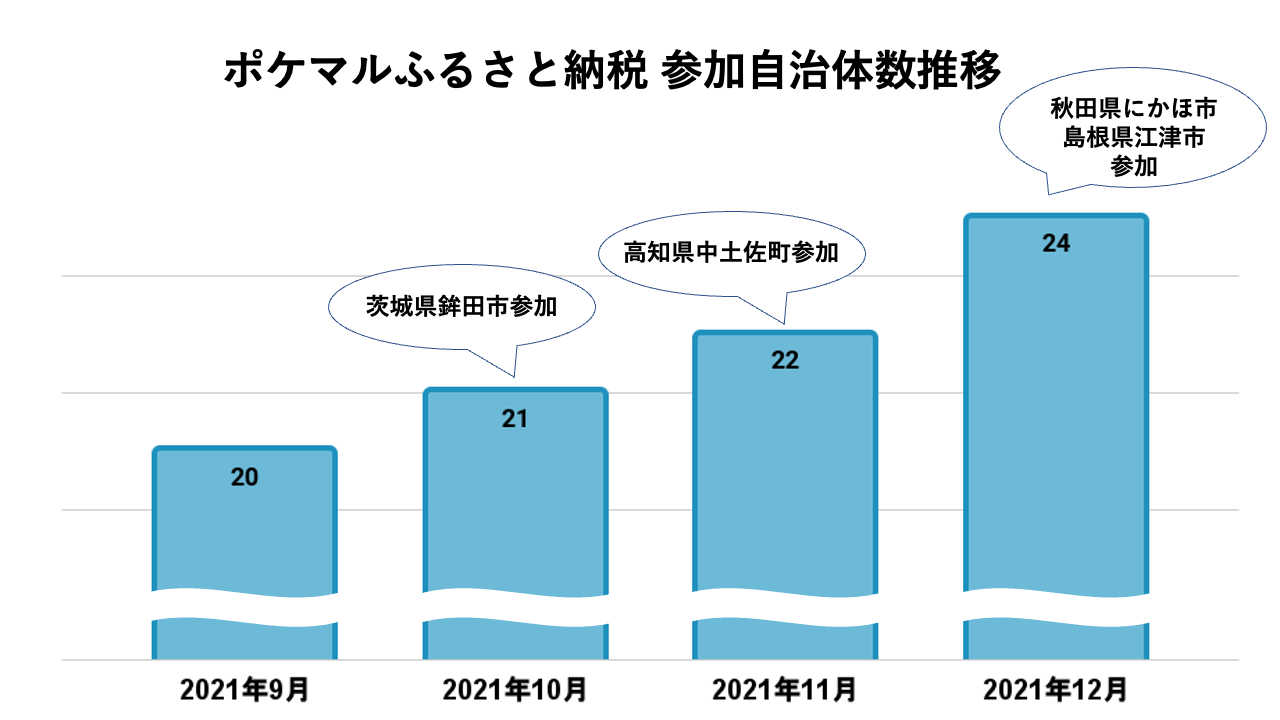 2021年9月にサービスを開始した、返礼品の生産者と寄附者が直接つながる国内初のふるさと納税サービス「ポケマルふるさと納税」に、12月より新たに秋田県にかほ市と島根県江津市が参加しました。これにより、「ポケマルふるさと納税」への参加自治体数は24自治体、参加生産者数は233名となりました。
