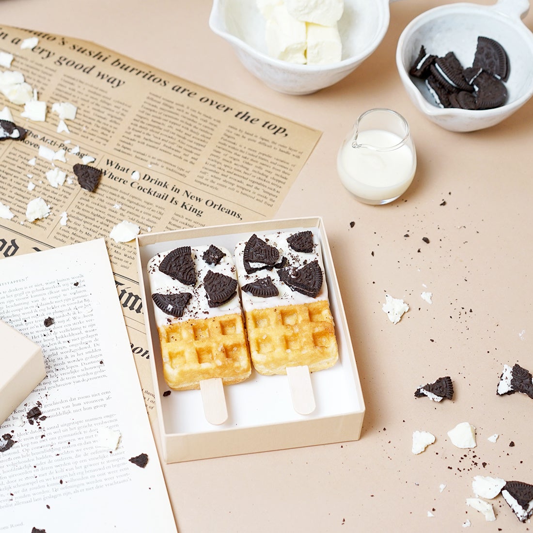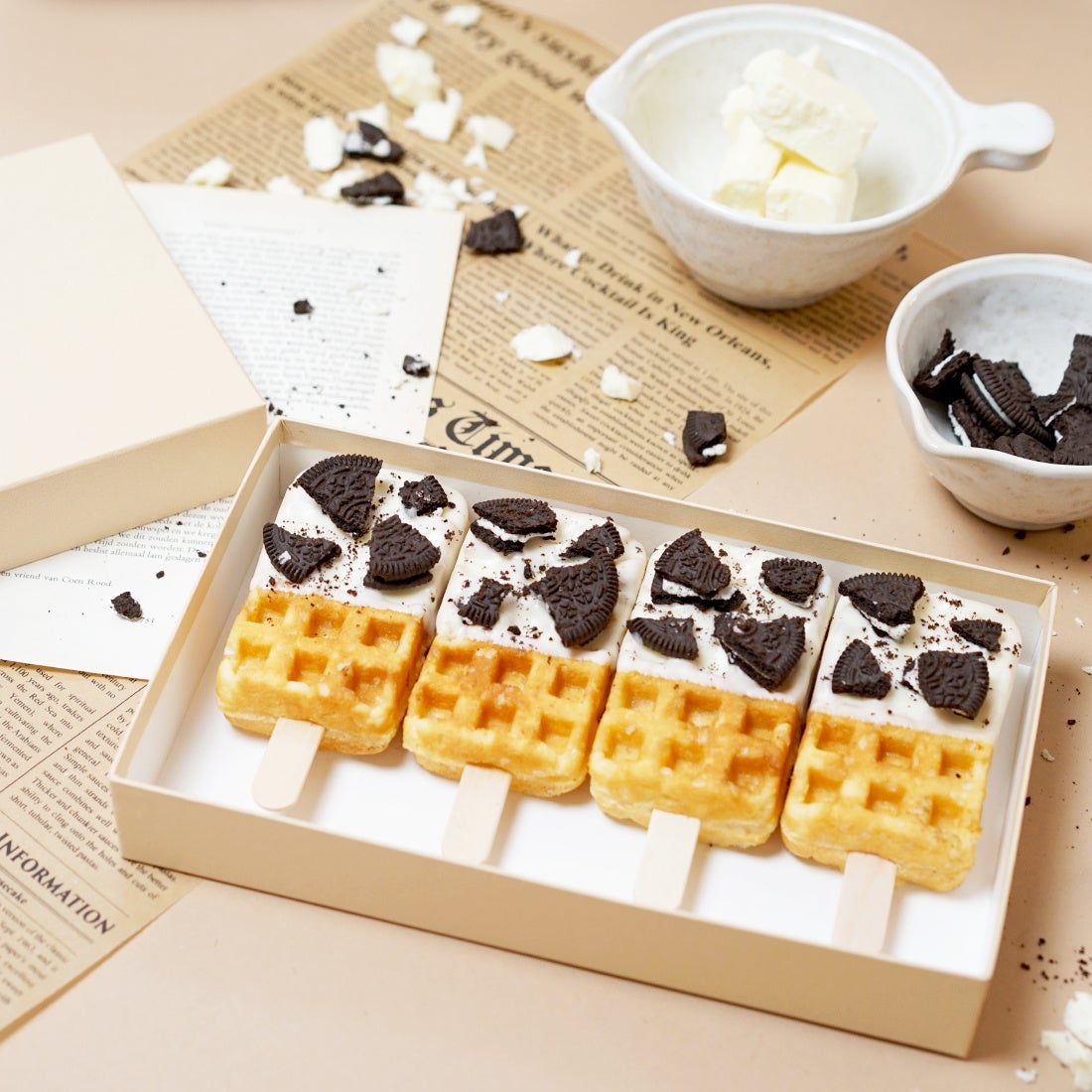 ひんやりシリーズ第4弾は、真夏の暑さを甘さで癒す『冷やして食べる京ワッフル~クッキー&クリーム~』。