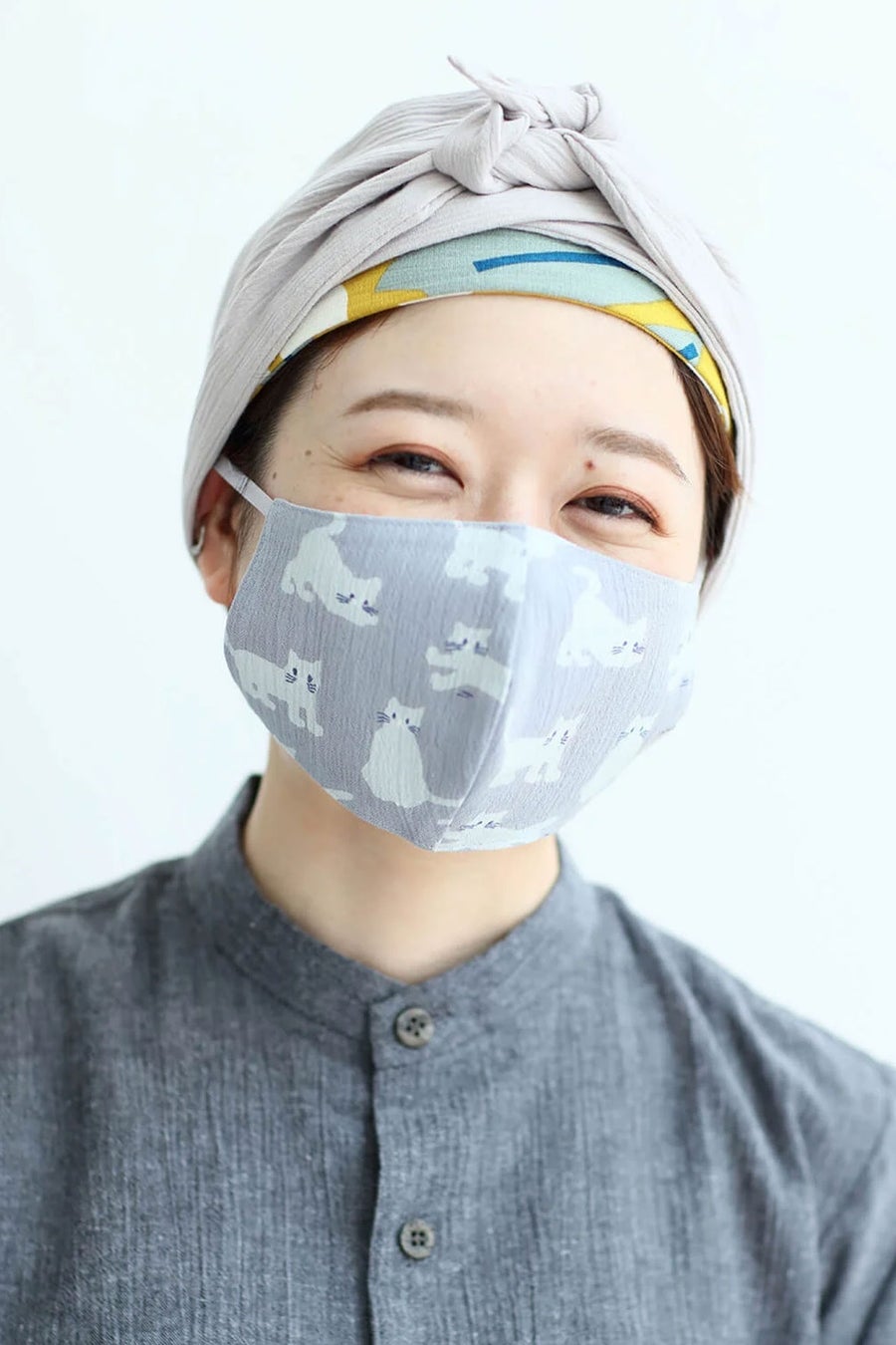 外布内布共に、主に高島縮(綿100%)を用いたテキスタイルマスク 各¥369(税込)