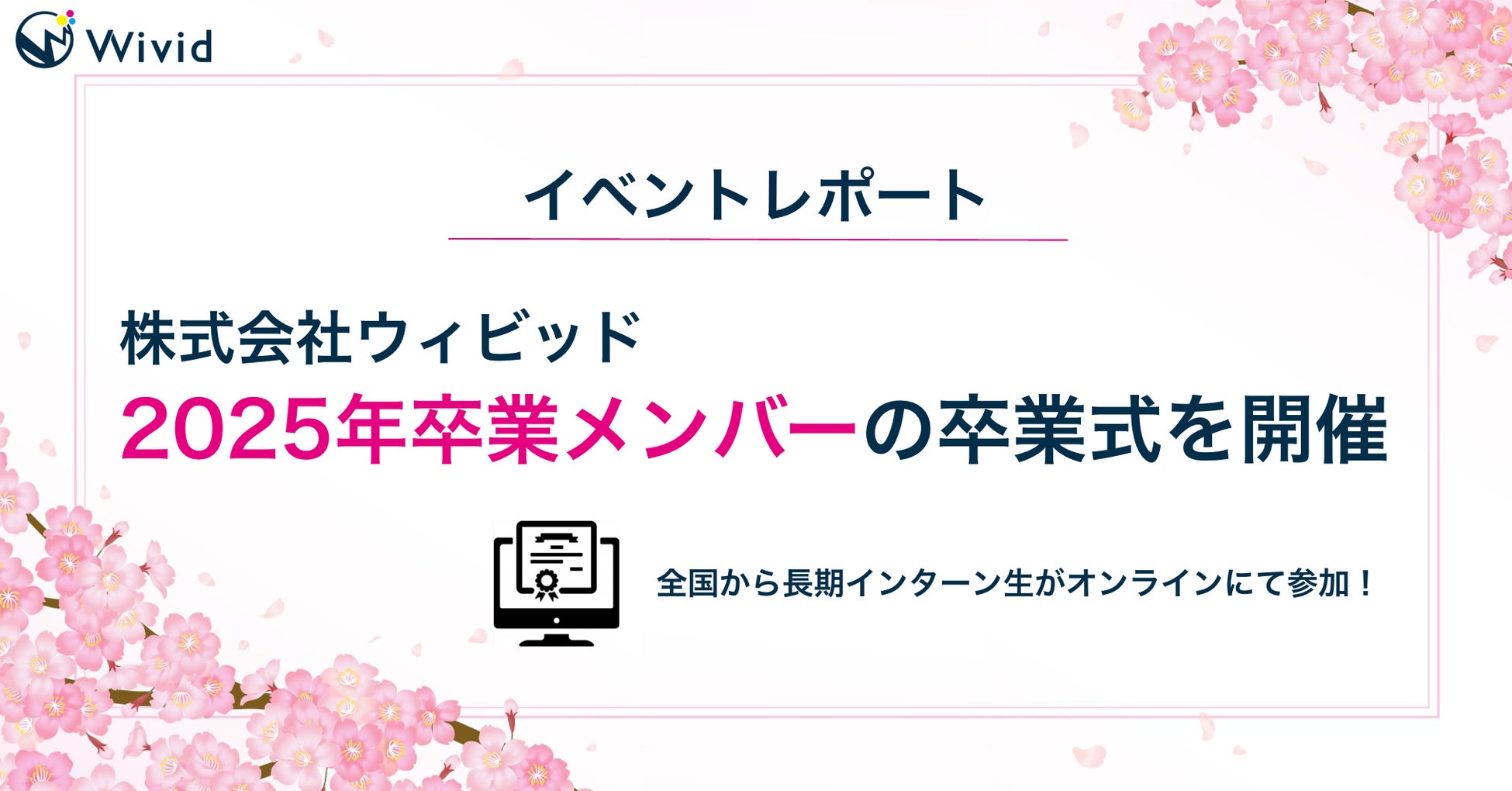 ハイクラス学生をメインターゲットとして就活支援を行う株式会社ウィビッド(本社:東京都渋谷区 代表取締役:大槻修也、以下ウィビッド)は、2025年卒業(以下25卒)長期インターンシップ生の卒業式を開催したことをお知らせいたします。