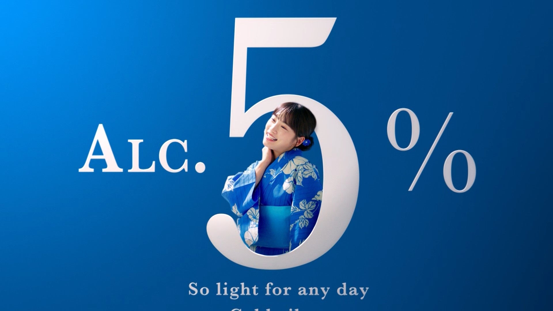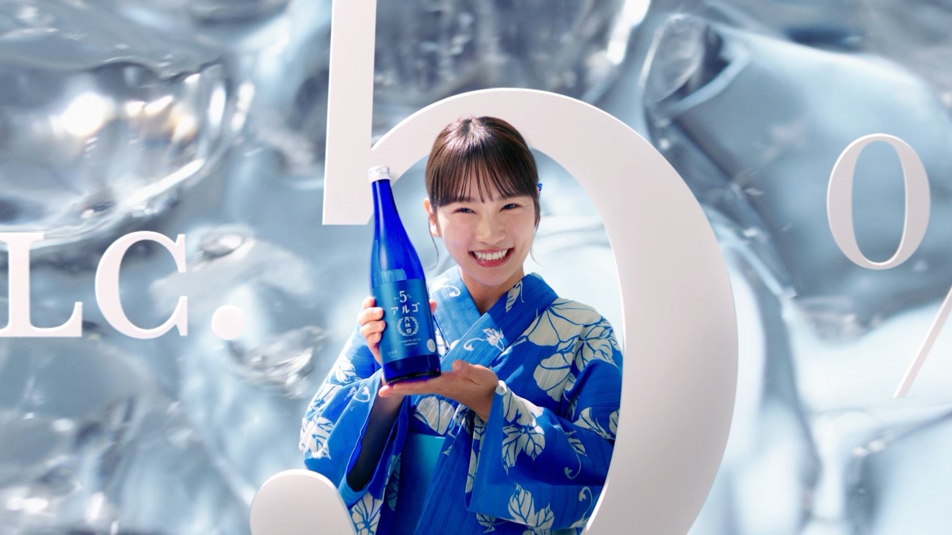 川栄さんが商品のイメージカラーである青を基調とした浴衣姿で登場。ALC.5%の“5”の文字から「夏ですねぇ。」と汗を拭き、「でも今年の夏は…アルゴがあるんです!」と元気よくアルゴを紹介します。ロックのアルゴを飲んで「くー!」と納得の表情の川栄さん。ラストには「夏こそ!アルコール5%」という言葉とともに笑顔で「月桂冠 アルゴ」と商品名を語りかけます。