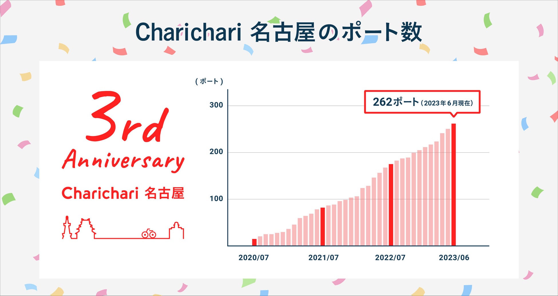 3周年を迎えた名古屋においても、名古屋駅・栄を中心とした中心市街地から、金山・熱田・大曽根(ナゴヤドーム)といった広域においてもエリアを拡大してまいりました。とくにこの1年では、近鉄名古屋線沿いへのエリア拡大、錦二丁目エリアマネジメント会社との包括連携協定に基づき道路占用許可を活用した道路上へのポート設置、栄中心部のアクセス向上にも繋がる愛知芸術文化センターへのポート設置など、名古屋市内全体の利便性向上に取り組んでまいりました。