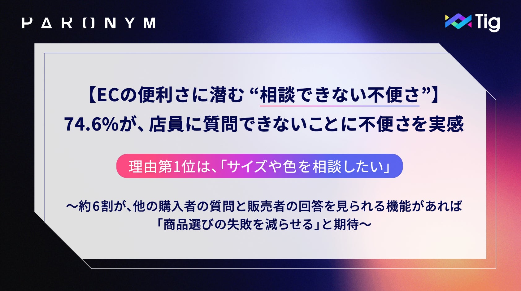 【ECの便利さに潜む “相談できない不便さ”】74.6%が店員に質問できない不便さを実感、理由第1位は「サイズや色を相談したい」<購入前コミュニケーションに関する実態調査を発表>