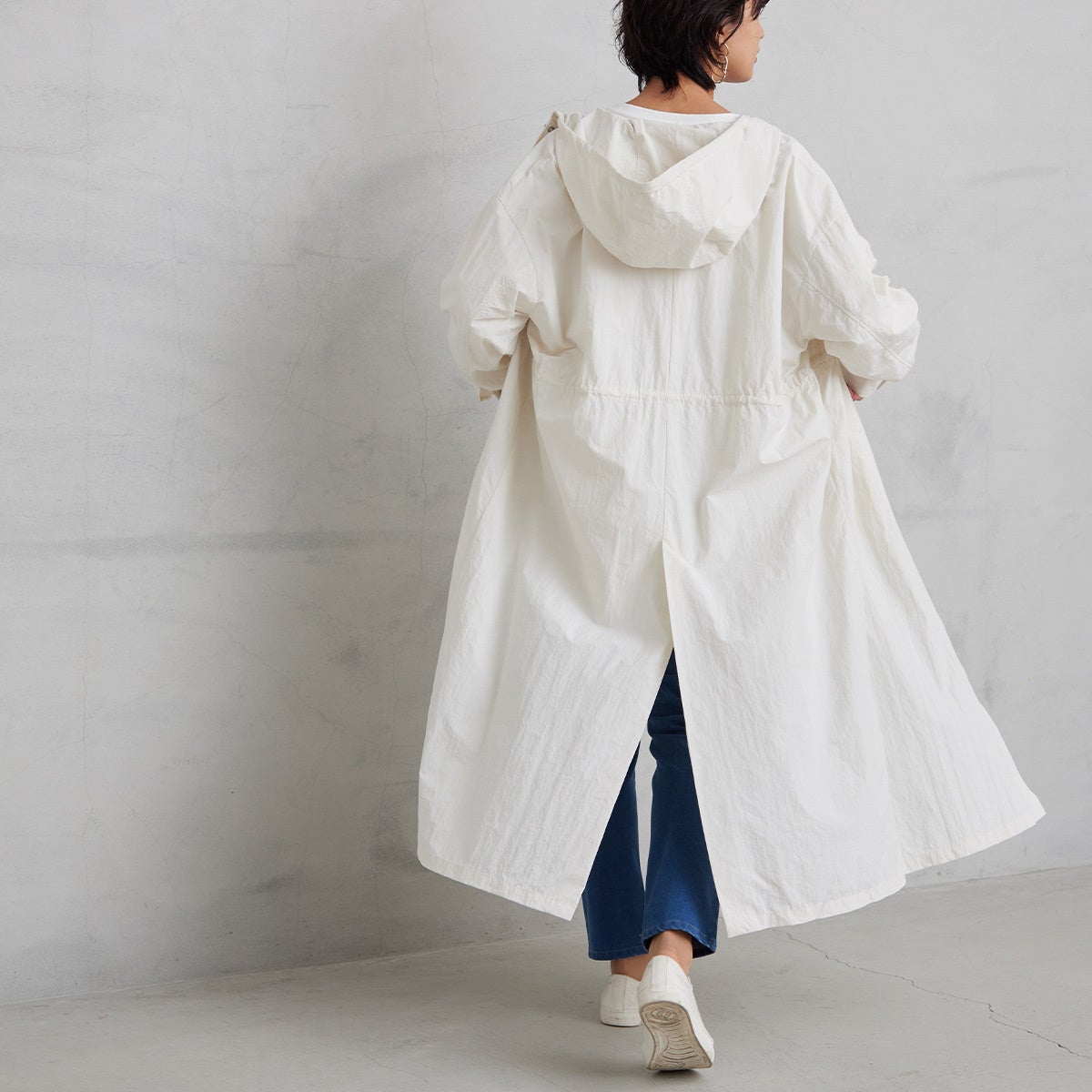 ペットボトルや端切れ生地をゴミとして廃棄するのではなく、生地の原料として再利用。撥水とUVカットの機能性も兼ね備えた万能アウター。
