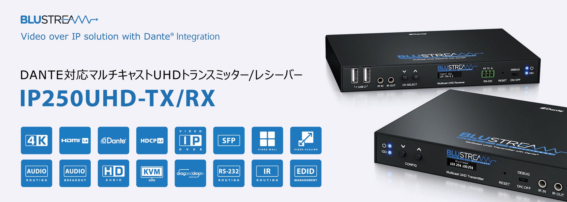 Blustream社製 Dante対応マルチキャストUHDトランスミッタ/レシーバ 2023年12月8日(金)発売!