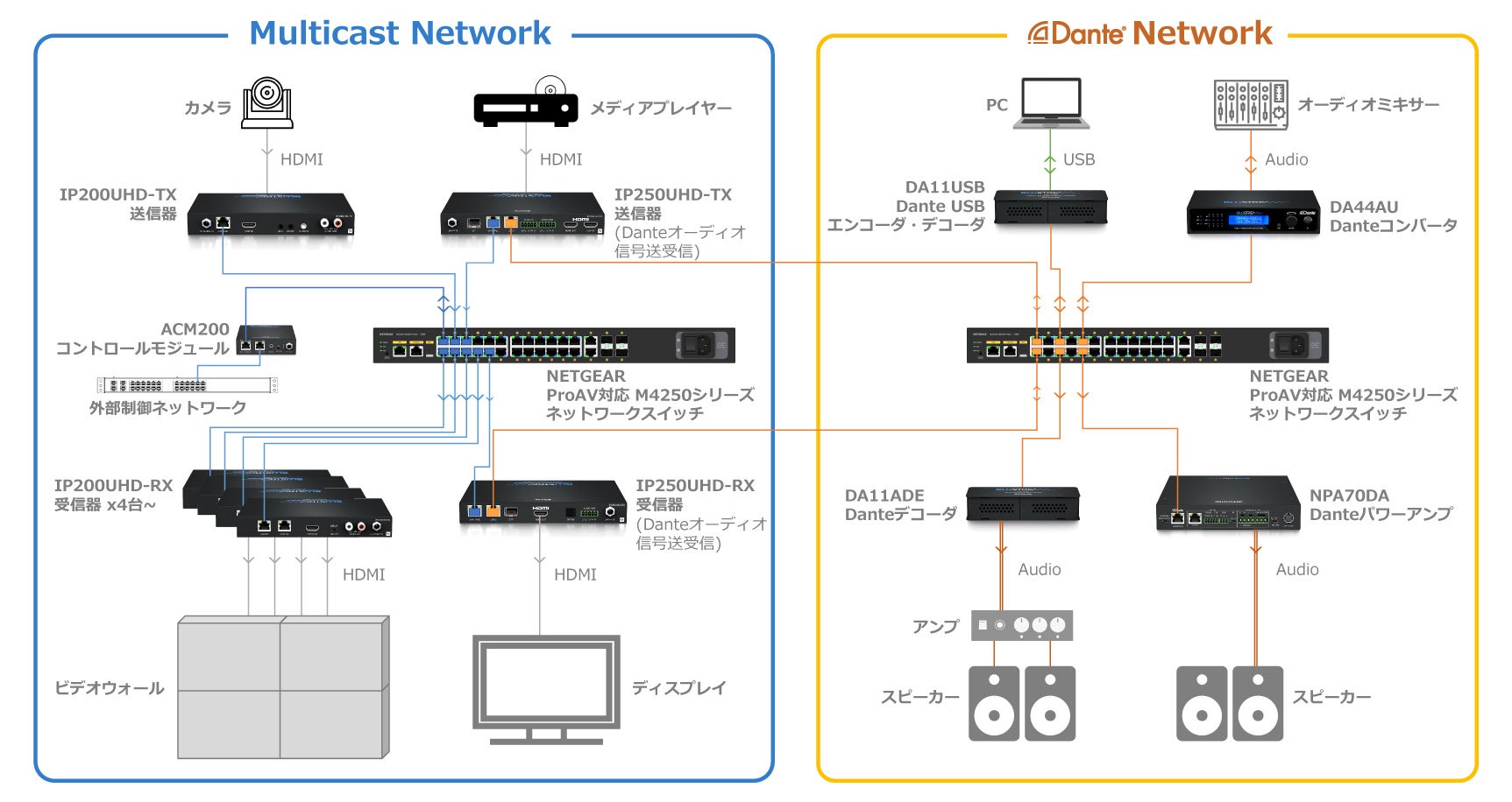 Dante対応マルチキャストUHD トランスミッタ [型番:IP250UHD-TX] 、レシーバ [型番:IP250UHD-RX]は、NETGEAR社(以下ネットギア)のProAVスイッチ「M4250」と相互動作確認済みです。